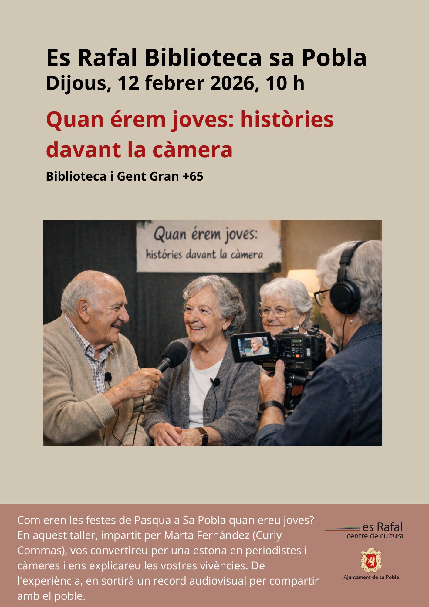 En aquest taller, impartit per Marta Fernández (Curly Commas), vos convertireu per una estona en periodistes i càmeres i ens explicareu les vostres vivències. De l'experiència, en sortirà un record audiovisual per compartir amb el poble.