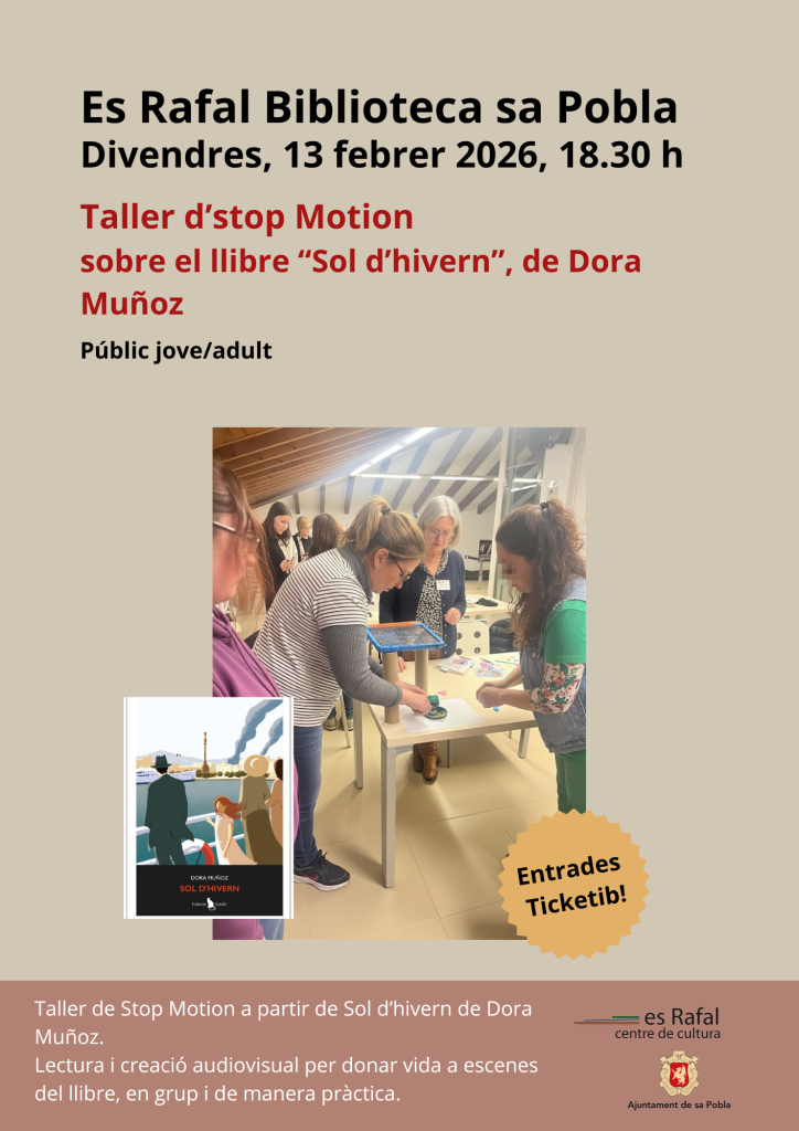 Un taller de Stop Motion basat en l’obra “Sol d’hivern” de Dora Muñoz, adreçat a públic jove i adult amb interès per la literatura i les arts audiovisuals. L’activitat té com a objectiu combinar la lectura amb la creació artística, permetent als participants explorar els personatges, les situacions i l’ambient de l’obra a través de l’animació.