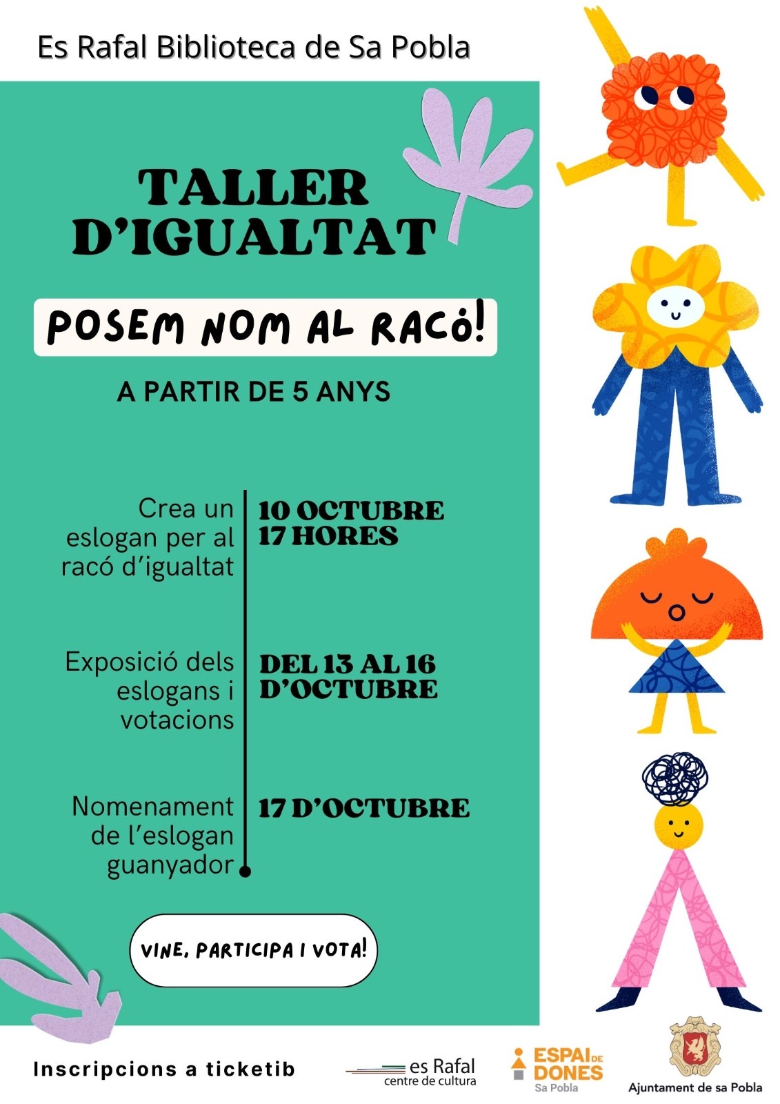 Convidam tothom a participar-hi amb dibuixos i eslògans. Després, totes les propostes es duran a votació entre els usuaris de la biblioteca, i la més votada es convertirà en la imatge del nostre Racó d’Igualtat.