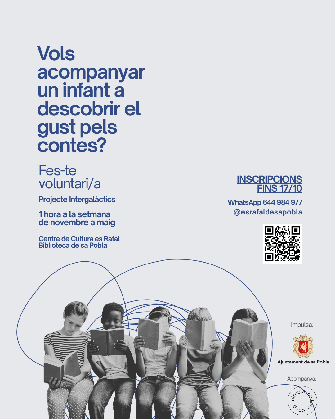 Només s'ha de dedicar 1 hora a la setmana, de novembre a maig, a la Biblioteca de sa Pobla (Centre de Cultura es Rafal).