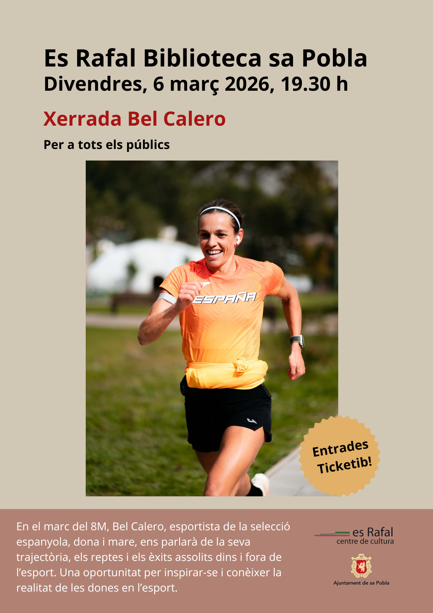 En el marc de la commemoració del 8 de març, la Biblioteca Municipal de sa Pobla organitza una xerrada amb Bel Calero, esportista de reconegut prestigi, membre de la selecció espanyola, dona i mare. L’activitat està dirigida a tots els públic i té com a objectiu apropar la ciutadania a les experiències personals i professionals de dones destacades en l’esport.