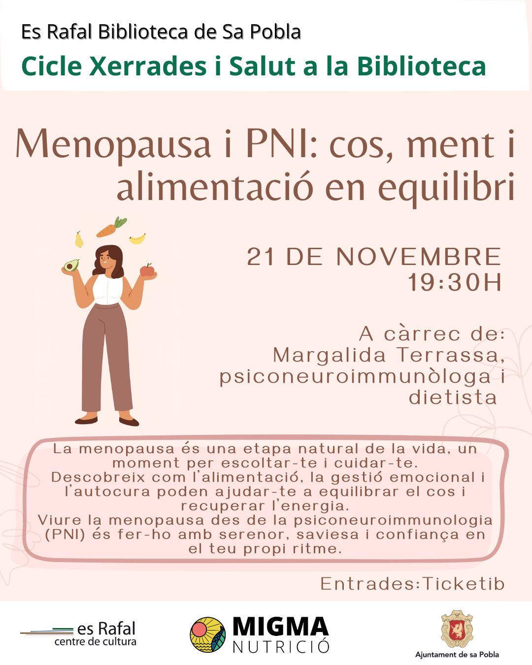La menopausa és una etapa natural de la vida, un moment per escoltar-te i cuidar-te. Descobreix com l'alimentació, la gestió emocional i l'autocura poden ajudart-te a equilibrar el cos i recuperar l'energia.