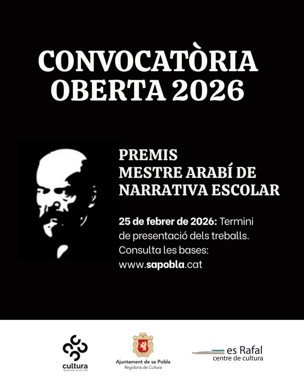 Aquest premi, amb format de concurs literari, té per objecte estimular i millorar les habilitats de lectura i escriptura entre tots els estudiants de sa Pobla, així com incentivar l’estimació a les lletres, tot perseguint el progrés i millor desenvolupament cultural de la nostra societat. S’estableixen les sis categories de participació següents: - Batxillerat/ CIFP/ CEPA - ESO - 1r i 2n de primària - 3r i 4t de primària - 5è i 6è de primària - Educació infantil (5 anys) Calendari: - 25 de febrer de 2026. Termini de presentació dels treballs. - 6 de març de 2026. Publicació de la relació provisional d’obres presentades. - 13 de març de 2026. Termini per esmenar errors en la inscripció de treballs. - 20 de març de 2026. Publicació de la relació definitiva d’obres que entren en concurs. - 13 d’abril de 2026. Termini per donar a conèixer l’acta del jurat del premi. - Lliurament dels premis, dins els actes programats per la diada de Sant Jordi 2026.